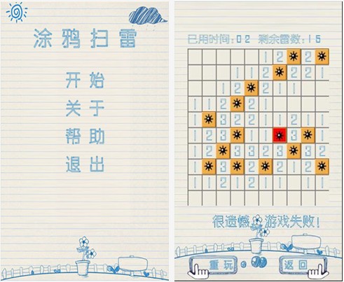 涂鸦扫雷是个界面非常清新的扫雷游戏。游戏保留了传统扫雷游戏的操作,原汁原味的再现了扫雷的魅力,创新式涂鸦风格的画面一扫Window时代经典扫雷画面上的阴霾,让您在一个轻松有趣的游戏世界中,全身心的放松自己。