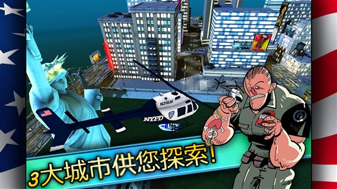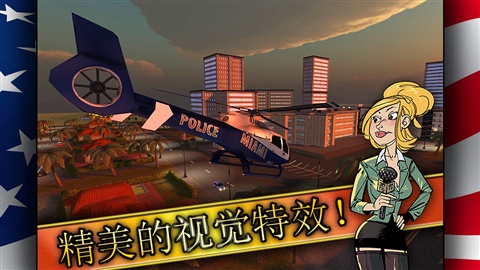 这是一款全新的警匪追逐游戏,玩家扮演的是追击歹徒的警察。但是,在这款游戏中不再如同往日一样老套地开着警车抓捕罪犯,这次你将驾驶着直升机,指引警车展开全城大追捕。游戏以迈阿密、纽约和洛杉矶这样的美国大都市作为故事背景,充分体现了游戏的美式风味。