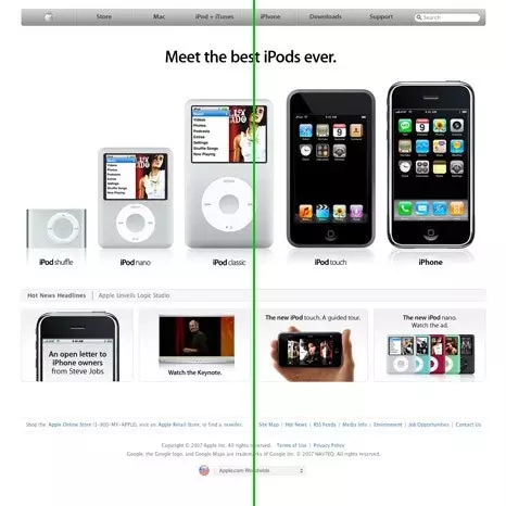 苹果是现代网页中实现对称平衡的典范。如图二,每个元素都是在中轴线两侧排布,创造出了一个视觉上的和谐情景。