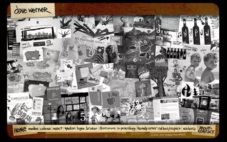关于整体感有个重要的例子——Dave Werner的portfolio作品集。其每一页都有网站手稿、图钉和其他一些杂七杂八的玩意儿,他把这些元素结合在一起并且打造出了整体感。既没有一样元素显得过于突兀,也没有出现迥异的整体风格。
